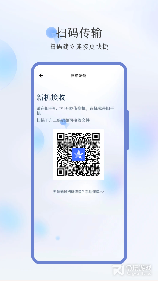 3.独有双模传输模式:普通模式,一方发送,一方接收,简单明了;摇一摇模式,两部手机同时摇一摇即可自动连接进行文件互传