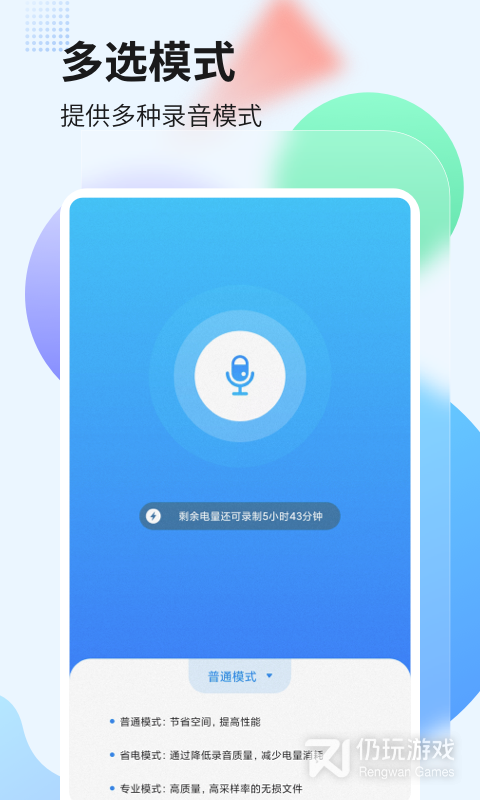 2、能够以高质量的方式录入每一个场景,同时集合录音转文字,实时转写等功能,一键导入转换精准识别音源,多种录音模式应对各种不同的场合,省电高效简单好用,它就是你的掌上录音笔