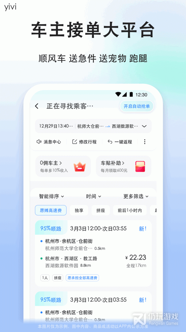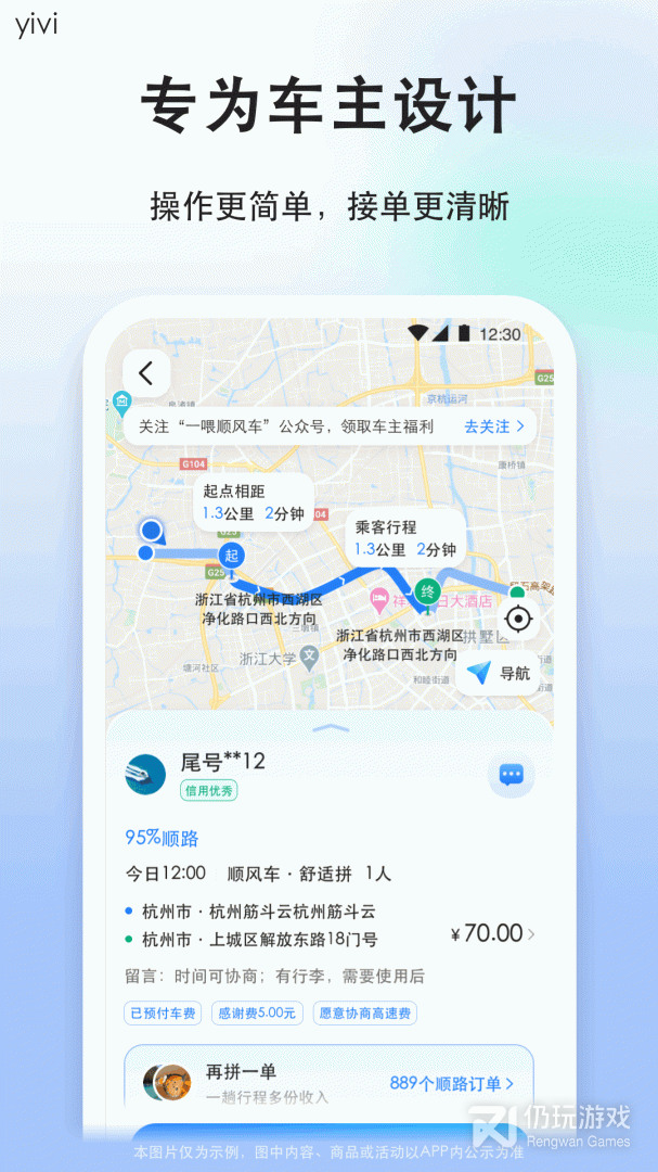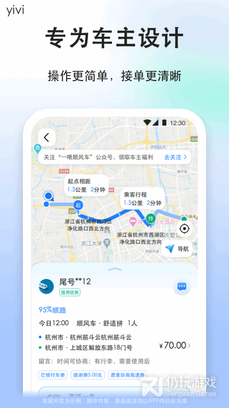 1、快速的进行车辆的寻找,平台为你匹配路线更优的车辆,让你更好的乘坐顺风车。