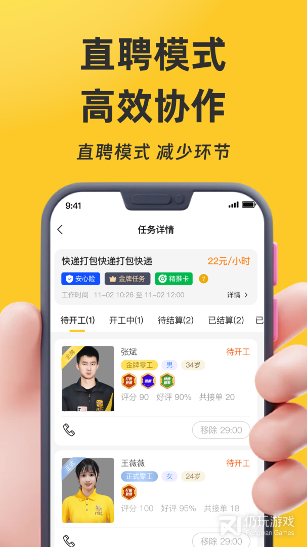1、零工从业者可以通过app即可在手机上找到自己满意的工作、兼职。无需再聚集在劳务市场话费大量时间成本寻找工作。雇主也可以在app内完成零工的招聘