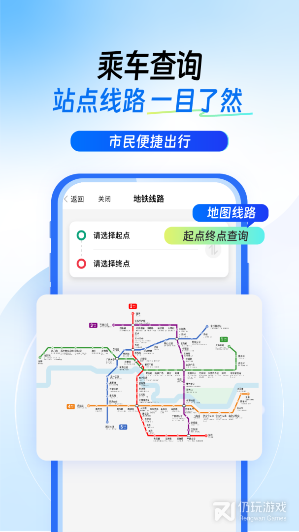 1、线路图:主界面,可查询站点之间的信息,包含票价、途经站、首末班次等。站点信息,提供站内的服务信息,如洗手间、充值服务区、自动扶梯及电梯等,提供站外每个出口附近的标志性道路、建筑信息。导航功能可为用户找到附近最近的地铁站。