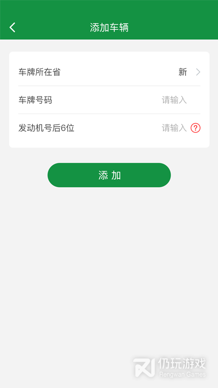 6、填写车牌所在的省份,车牌号和发动机号的后6位等,并随时打开车辆管理以了解不同汽车的用法