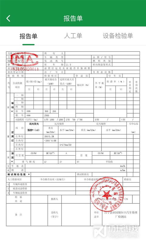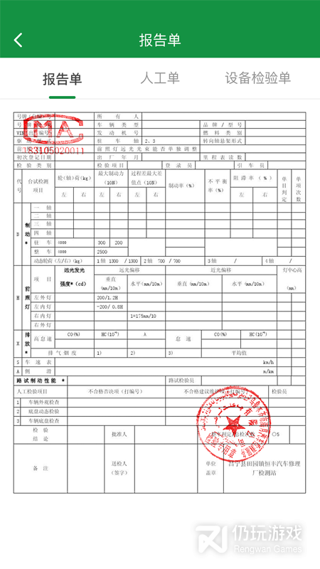 5、除了电子报告单之外,会提供人工单以及设备检验单等等
