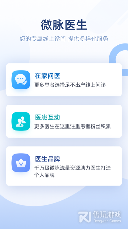 来微脉医生,开设您的专属线上诊间。医生可在平台上为本地患者提供咨询服务和患者管理。目前平台共聚合了150多座城市,近千家公立医院,超30000名医生加入!为近千万微脉用户提供在线诊疗、患者管理、诊后随访等个性化医疗服务,赚取阳光收入的同时,为医院留住患者。通过互联网,让医生提供医疗健康服务不再难!