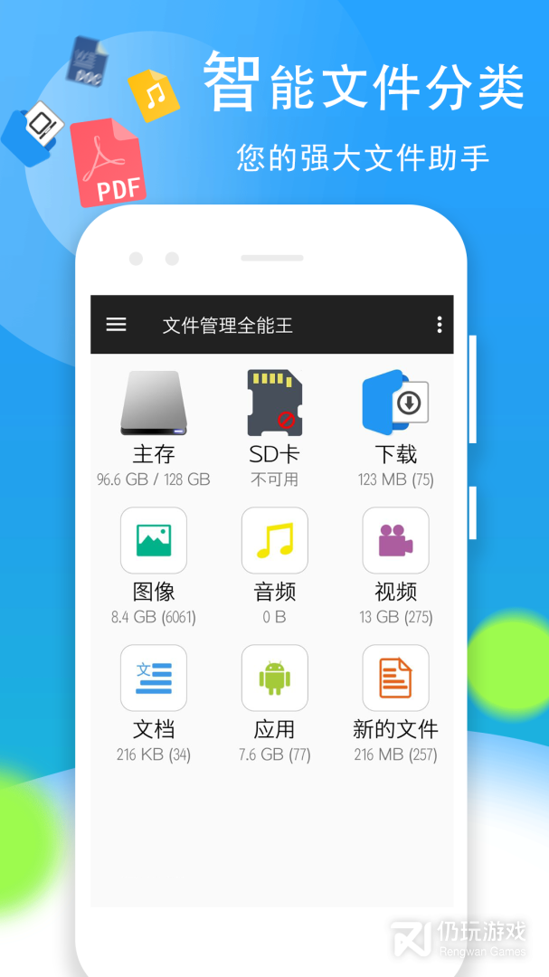 2、文件管理全能王pp在查找文档文件时就可以快速定位目标了,十分方便轻松;使用文件管理全能王可以轻松找到你所想要的文件,也可以通过app管理图片、视频、文档、安装包等,超级方便