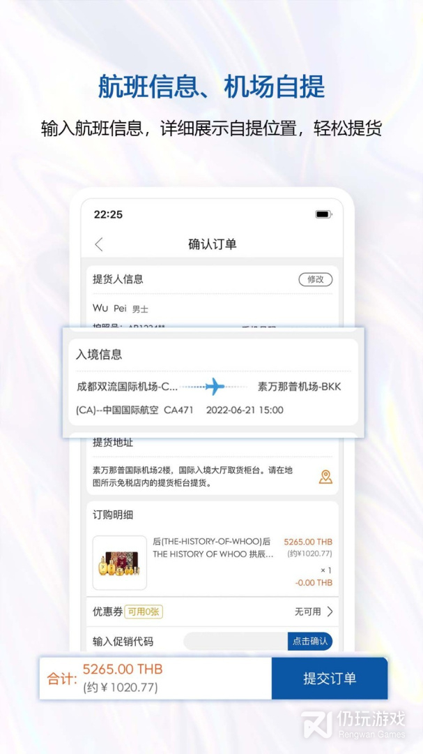 ·选中商品,一键下单,机场自提,省去繁琐的购物流程;