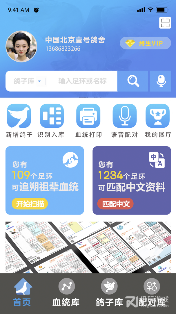 6、所有幼鸽血统自动产生,全棚鸽子拍照无需一分钱成本,手机拍照自动关联照片对应的鸽子血统书。