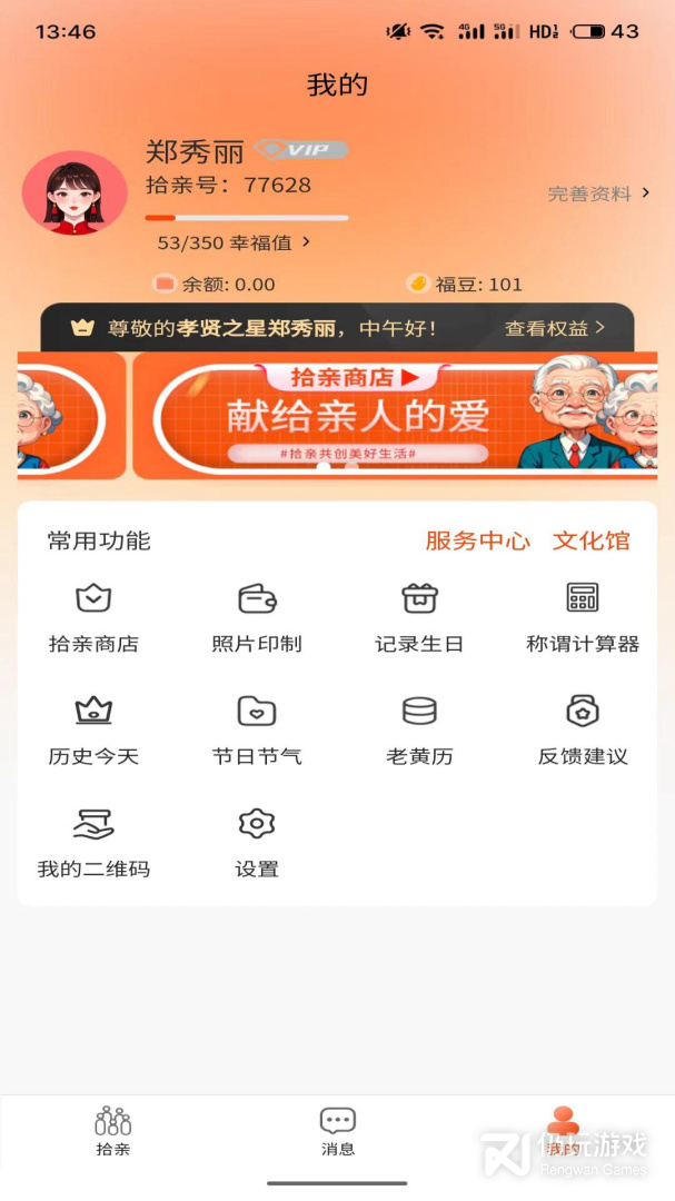 一键添加好友,这里的添加按钮可以快速的找到尚未入驻这里的亲人而添加好友;