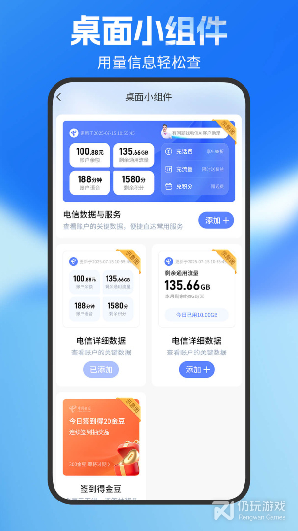 桌面小组件 用量信息轻松查