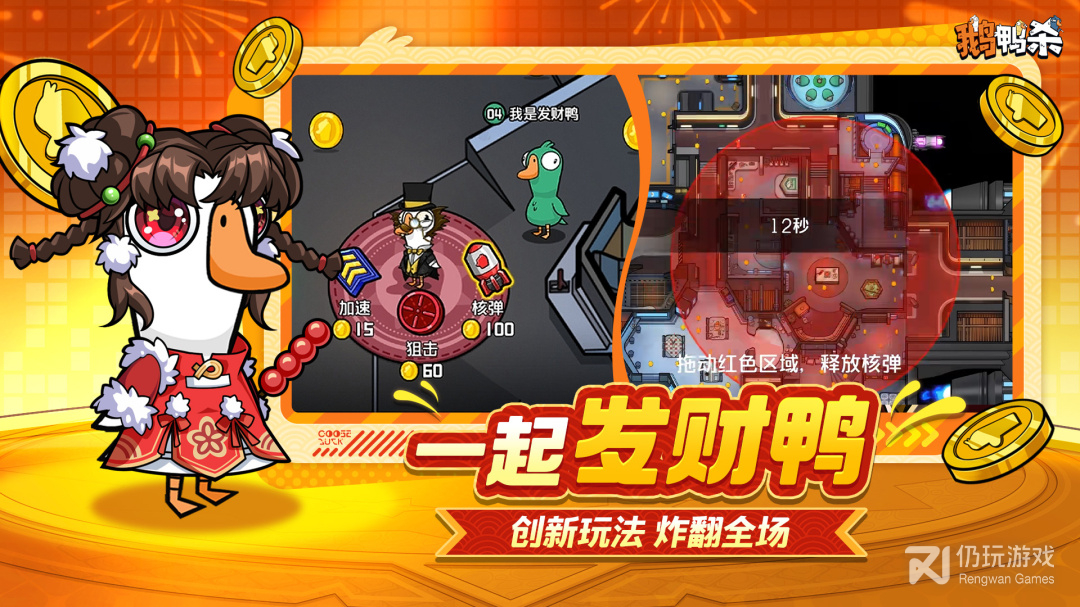 鹅鸭杀,这个游戏中的玩家可以进行在线的联机合作,还可以相互之间完成斗智斗勇的挑战,整个过程所能增加的乐趣也会更多,和熟悉的玩家进行对战,得到的刺激性也会更强大。