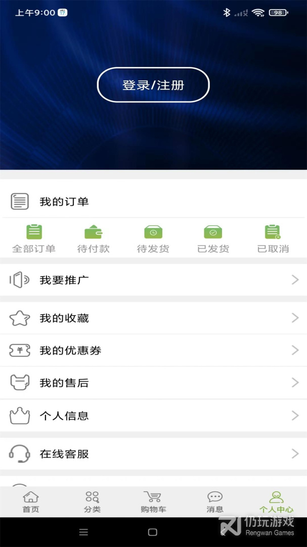 6、此外,在个人中心我们还可以查看全部订单、待付款、待发货、已发货、我的推广、优惠卷等功能。