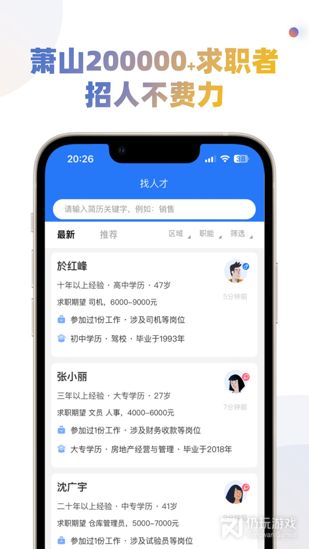 1、萧山招聘网,这是一款超级靠谱的哦手机求职类的软件,这款软件会根据用户的位置来为你推荐周围的优质工作,这里所有的工作都是经过严格的审核的,用户可以放心的进行使用,萧山招聘网软件中用户还能制作一份简历,遇到心仪的工作直接投放简历就可以了,有需要找工作的小伙伴可以下载