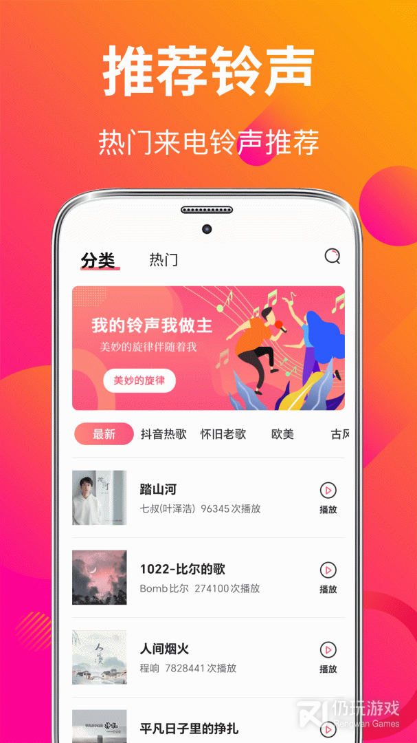 4、热门铃声榜单实时推荐想知道现在最时髦的铃声吗?快来看看大家都在搜什么~热门铃声榜单一定不会让你失望