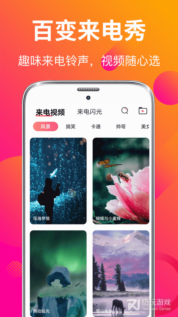 2、智能搜索快速的找寻你喜爱的来电视频、主题