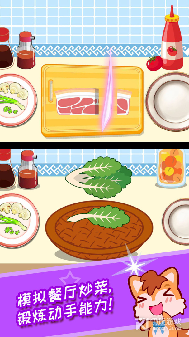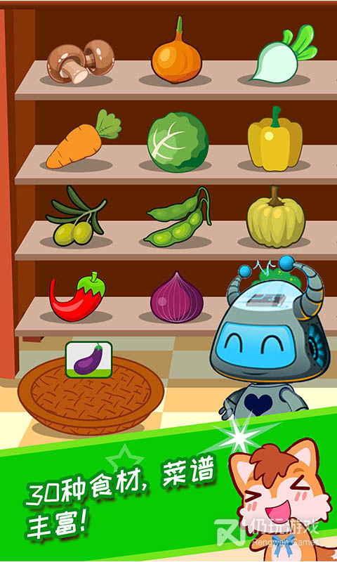 1、宝宝机器人餐厅添置不同的厨具,了解不同的烹饪知识,自由创作各种黑暗料理,一边学一边玩哦