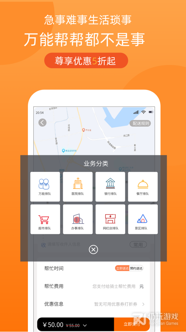 1、跑腿网app是国内顶尖的跑腿服务平台,平台为用户提供了超多的跑腿服务,涵盖于我们日常生活的方方面面,如代驾、代买、代送、代排队等,现已经在全国数百座城市火爆运营,每位跑腿人员都具有专业素养,统一培训上岗为大家提供跑腿服务,服务优质,态度端正,高效专业