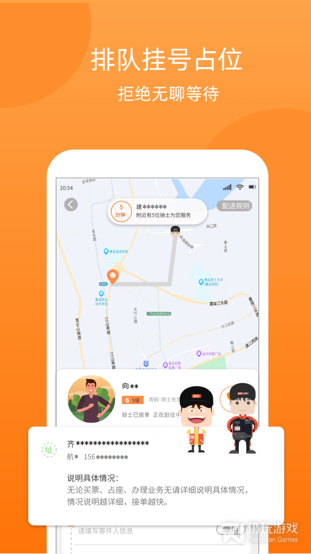 2、有任何跑腿需要请在线上发布,数万名跑腿配送人员随叫随到,快捷接单,同城一小时送达,服务贴心,包括外卖配送、代买代取等服务