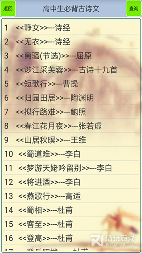 高中生必备古诗文是一款十分好用的古诗文背诵软件,提供多种生活方式供你学习,