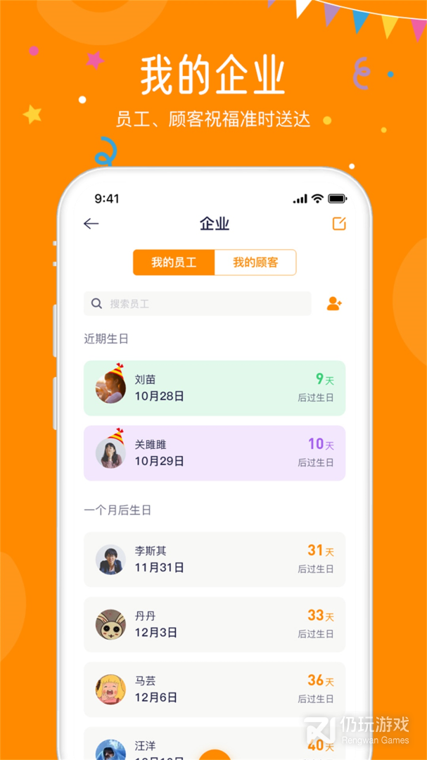 2、帮你记录更重要的日子,可以设置你关心的人的日子,让距离变得更清楚,为你推荐更多的生日礼物,还能作为公司员工的祝福信息,一起来使用一下吧
