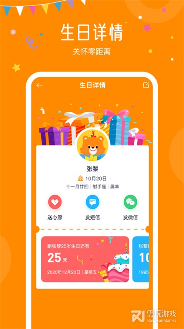 4、时刻提醒你。软件操作便捷,记生日、送祝福就用生日小管家