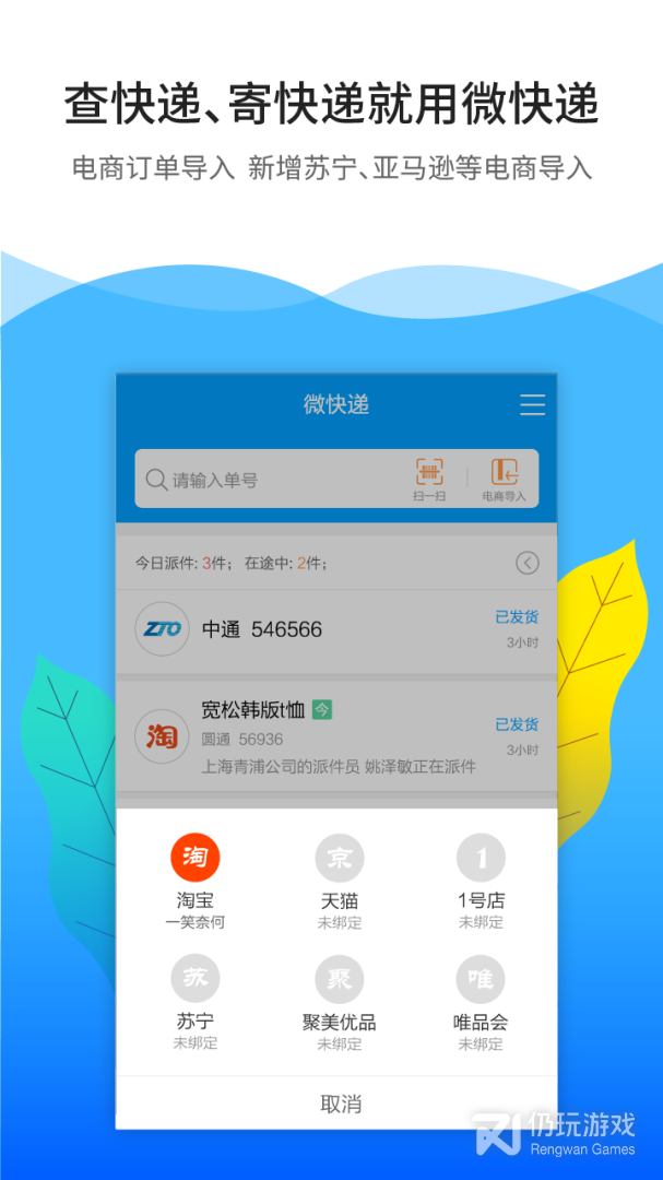 2、众多网购订单,包括淘宝,京东,唯品会,一号店,聚美优品等主流电商订单,一键导入,即可查询物品到哪儿了