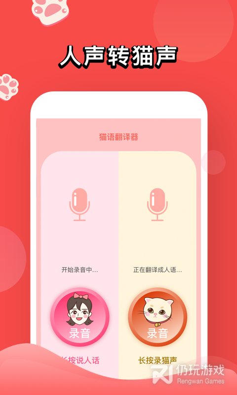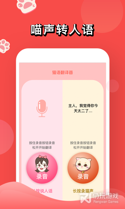 1、该软件可以吧小猫咪的声音翻译成文字的形式给用户、用户也可以吧自己的声音翻译成猫语,与自家小猫咪在线交流