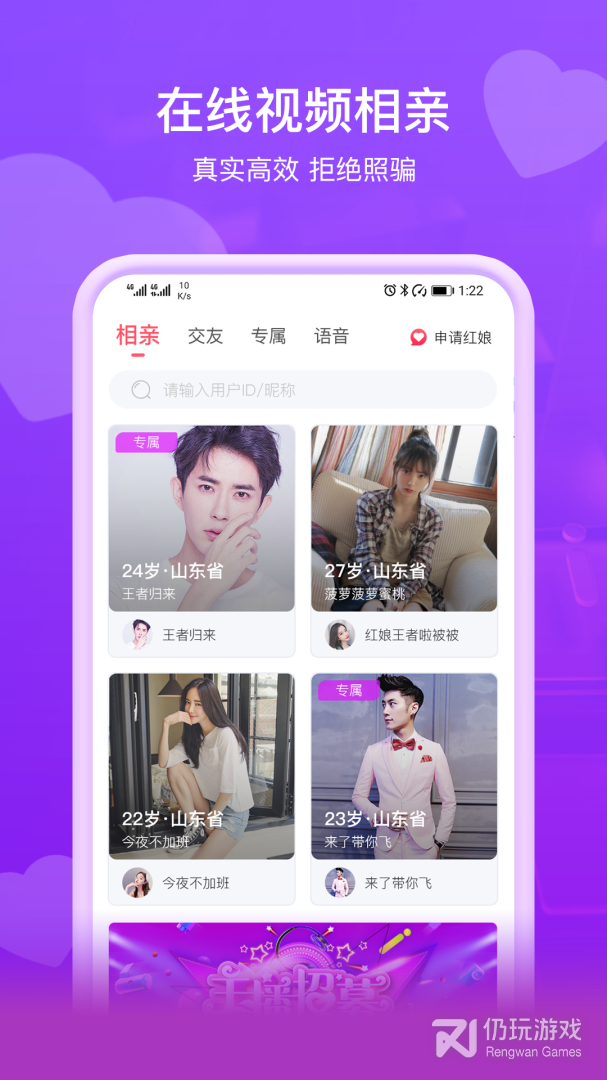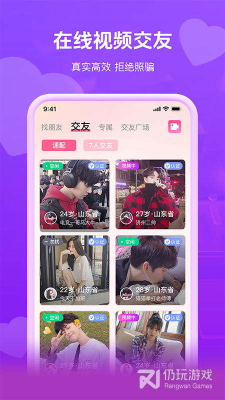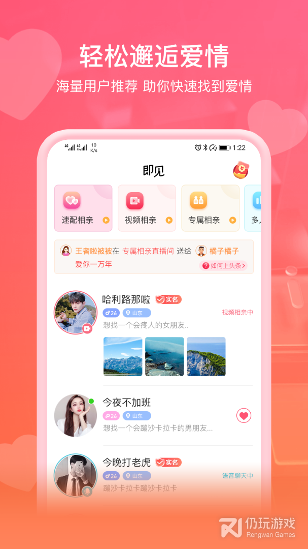2、在同一个城市中建立高质量的约会平台,通过语音,视频和文本将用户与合适的对象高效,真诚,专注地即时匹配