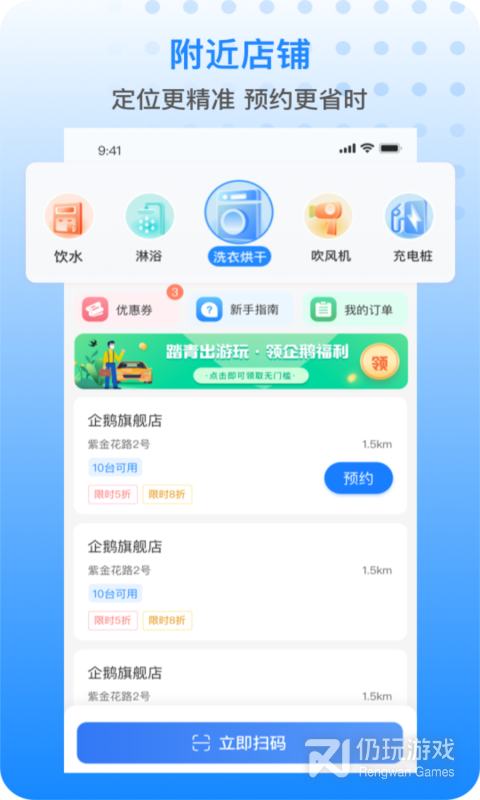 2、帮助用户足不出户,就可以预约使用周边的共享设备,满足用户洗衣,饮水,淋浴等生活需要