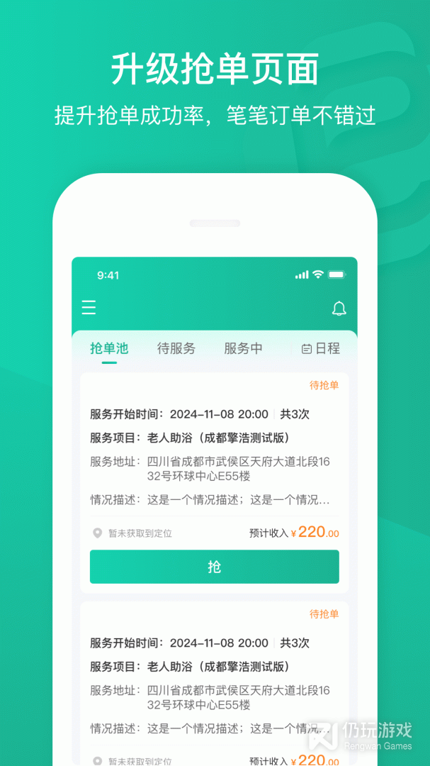 2、通过软件可以为他人提供上门医护服务,这样给患者带来方便,自己也能赚取更多的收入。软件的执业范围涵盖了换药、新生儿护理、老人照料、陪诊等。医护人员只需绑定机构后就可以在这里自由接单,并且还支持抢单