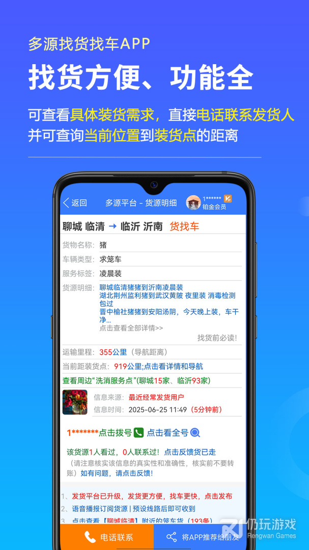 3、平台每天更新几十万货源车源信息,部分货源来自一手直接货主,早联系机会多
