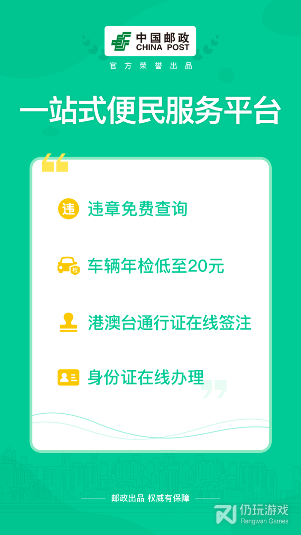 邮证港澳续签是中国邮政速递物流股份有限公司广东省分公司(以下简称“广东邮政速递物流”)推出的一款高效便捷的证件 办理便民服务手机应用,邮证港澳续签旨在减少群众办理 证件往返奔波之苦,邮证港澳续签协助政府机构为广大群众提供“足不出户、轻松办 证”的便民服务。