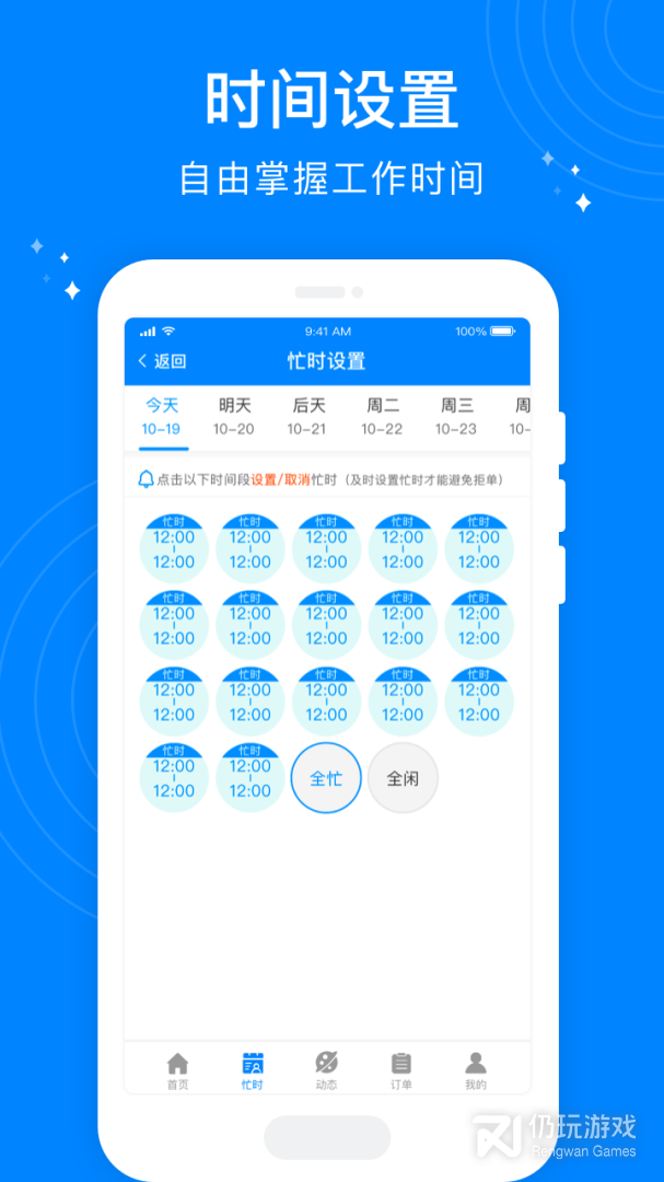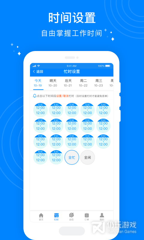 3、服务时间可以任意进行设置,这样让您的接单时间更加自由,什么时候想接就接