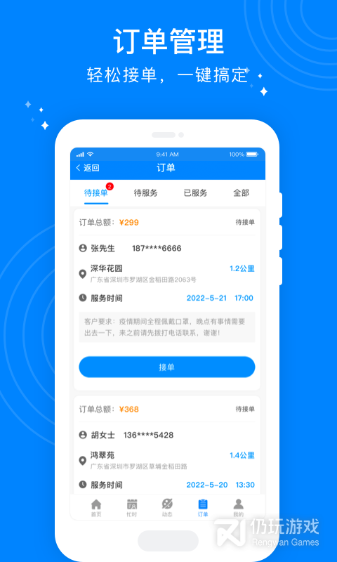 1、这里拥有海量订单资源,线上即可任意接单和服务