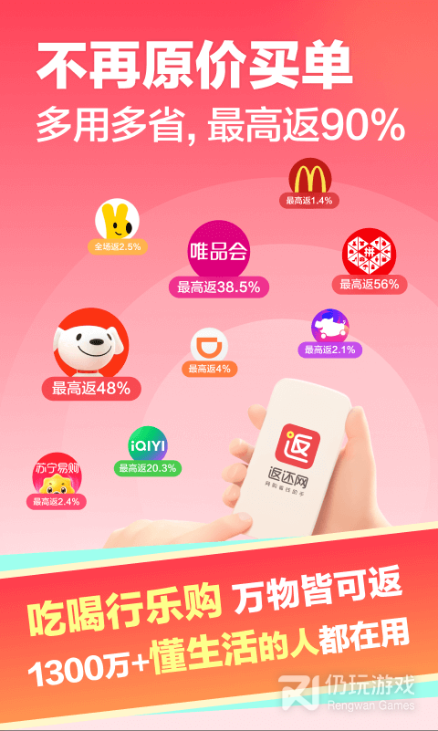 返还网—11年专注于购物返利,网购省钱的APP,免费领取大额优惠券,2000万购物达人公认省钱利器,为用户省钱过亿,返还用户可享:返还翻倍+券后再返+极速到账+返还金额全显示