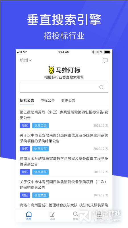 2、马蜂盯标是帮助众多从事招标投标岗位的小伙伴打造的手机搜索工具,查询各项政府采购与招投标大单,实时掌控招投标信息资讯,寻找商机!app使用简单方便,需要的直接来下载