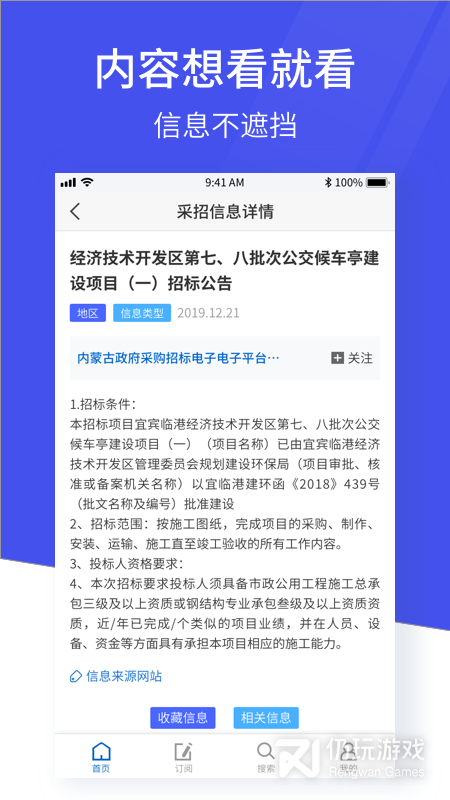 1.可以随时的去查看到最新的招标公告信息,而且也会不断的更新。