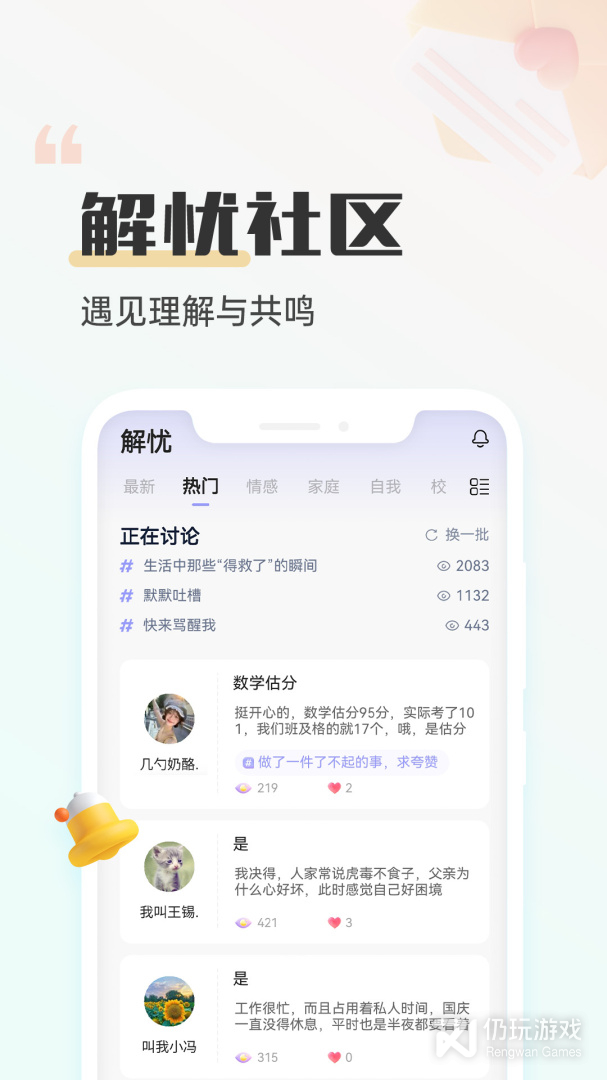 2、平台拥有AI疗愈,趣味减压,解忧社区,情绪管理等等丰富功能