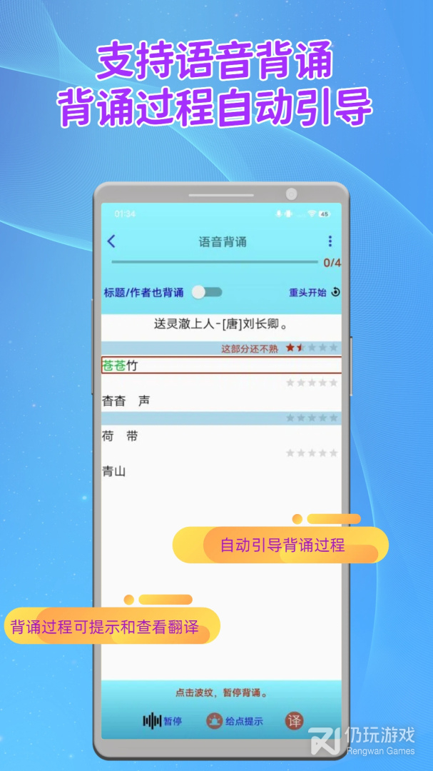 2、长嘴鸟Ai背诵收纳了海量的课本知识,以及一些国学经典,语录等,家长可以放心的使用,app会形成引导的背诵,让孩子逐渐养成一个良好的习惯,去理解和消化这些知识,还能对古诗词文进行字节化的讲解,理解的透彻了就更好的去背诵而不是一味地死记硬背。这样就可以非常高效的学习啦