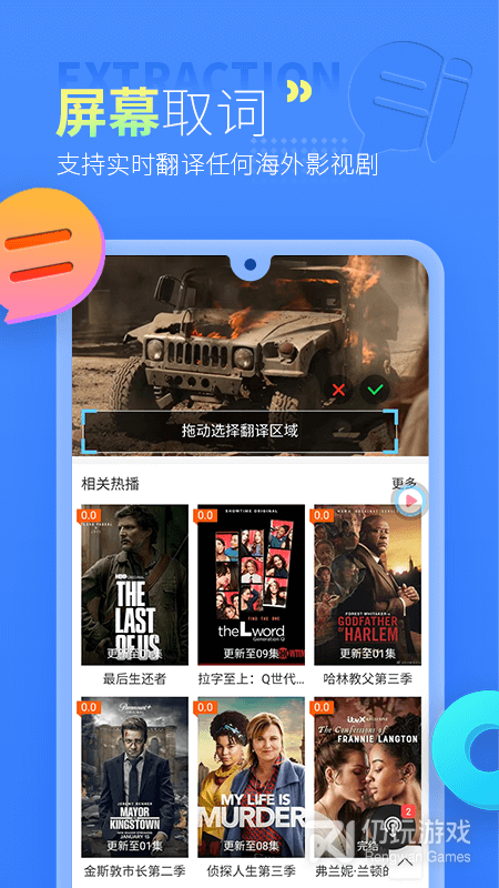 1、该软件给用户提供了各种不同国家的文字翻译,了解不同的翻译信息,还有各种不同的影视资源,大家可以直接观看,根据自己的需要进行设置,让你的观看体验得到有效的提升