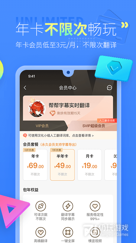 3、【不限次】开通天卡,月卡,年卡均可不限次翻译,畅享使用,无忧观看。