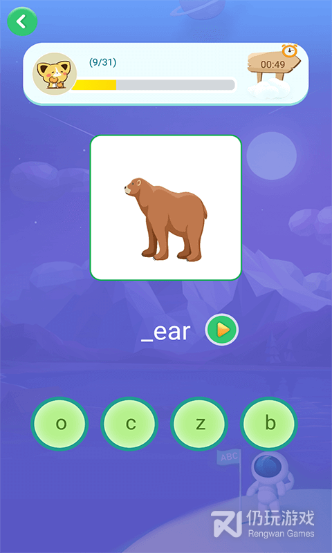 2、除了学习外,还配有儿歌,认字母小游戏检测宝宝的学习效果