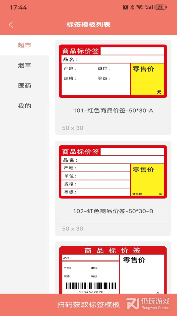 5、该平台实时更新大量的商品价签模板,直接打开手机就可以快速的选择