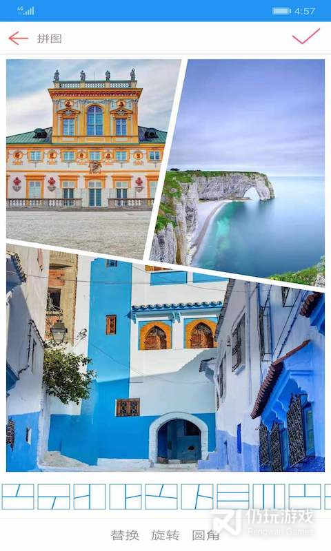 2、图片拼接拼图是一款将多张照片拼接成长图或者艺术图片的软件,图片拼接拼图能够将多张图片按照顺序拼接成一张长图,它支持添加边框和边框颜色功能,软件还可以进行图片编辑,软件支持截图、网络图片、相册照片等各种图片