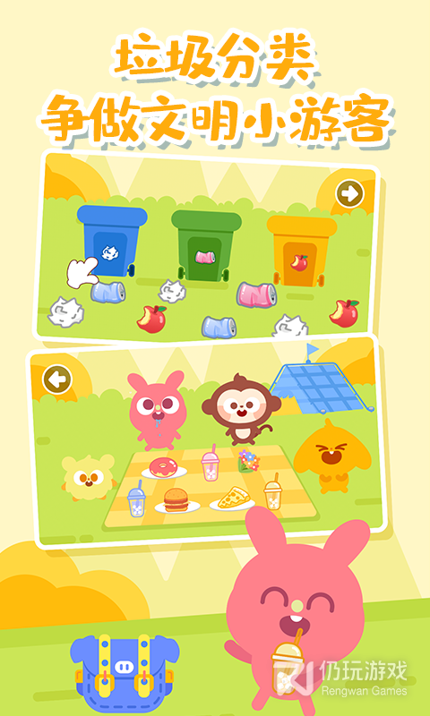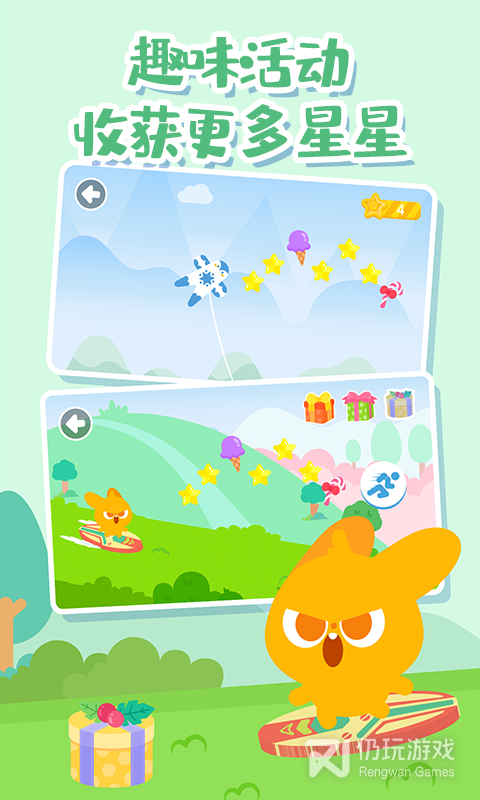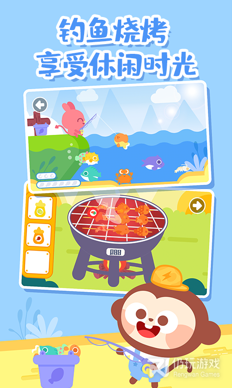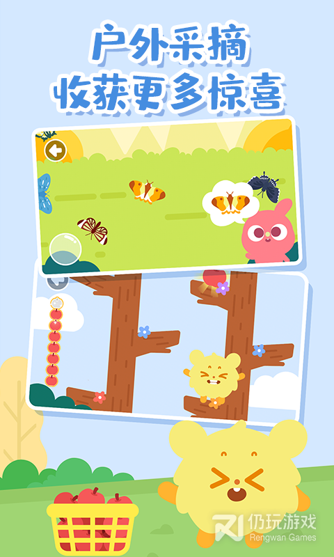 3、它可以让孩子享受到在家郊游的乐趣。软件为孩子提供了多种度假场景,包含了草上滑板,摘苹果,钓鱼,放风筝等6大项目,让孩子拥有身临其境的感觉。软件没有限制,打开就能玩,让孩子在玩耍中获取的成长