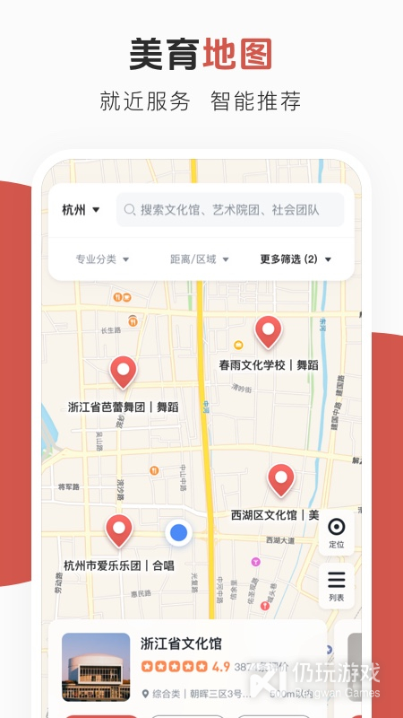 平台在文化和旅游部全国公共文化发展中心的指导下建设全民艺术普及数字资源总库和师资总库,并通过LBS(地理位置信息服务)模式为全国老百姓提供线上与线下相结合的艺术普及和美育教育服务,以公益化与市场化相结合的运营模式将平台打造成受全民欢迎的公共文化服务平台,让全国老百姓就近享受多元化、高品质、便捷化的艺术普及和美育教育服务。