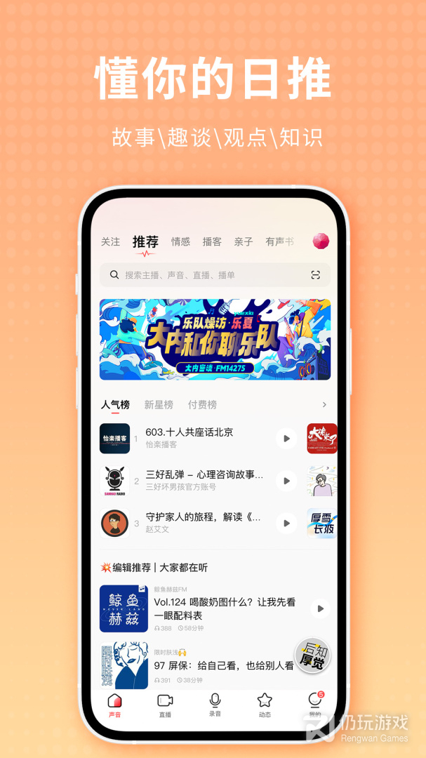 2、荔枝来自在线音乐电台荔枝FM推出的音乐电台App,荔枝这是很多网友们打发时间的神器,音乐、有了荔枝上了一天班的都市白领们可以放松自己的眼睛和大脑只用耳朵来享受声音带来的愉悦,收听自己喜欢的频道,品人生的乐趣。在你无聊的时候还可以自己来当主播将你的好声音传播给每一个荔枝听众哦