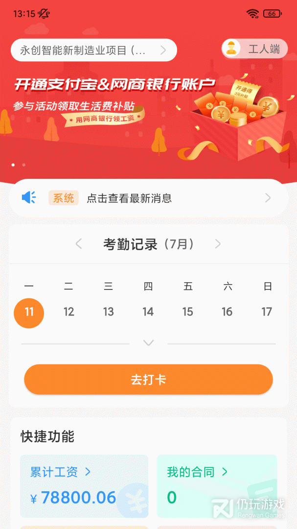 3、可以帮助用户快速管理工资和项目,随时随地进行理财,还可以方便用户掌握工程信息和进度,上下班打卡在线解决。赶快来下载体验吧