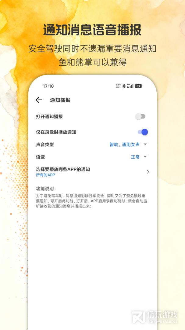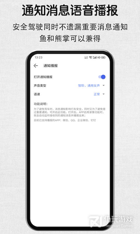 3、自动通知消息语音播报,保证安全驾驶的同时又不遗漏重要通知