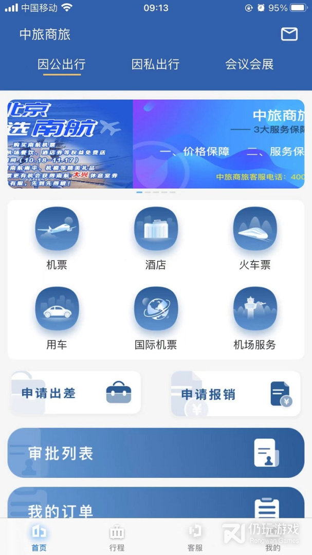 3、界面有出差的一站式服务,以及旅游的一站式服务,非常的周全