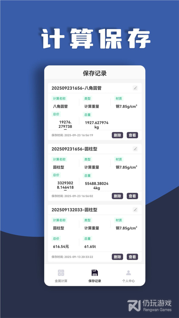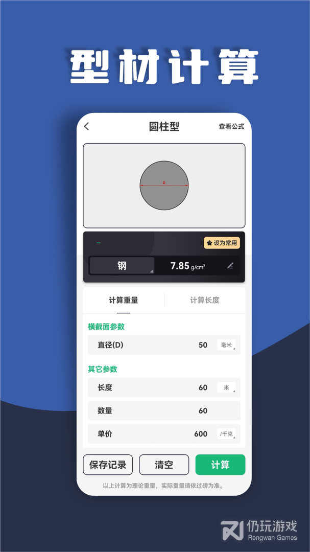 - 多种材质金属轻松计算,自定义金属密度